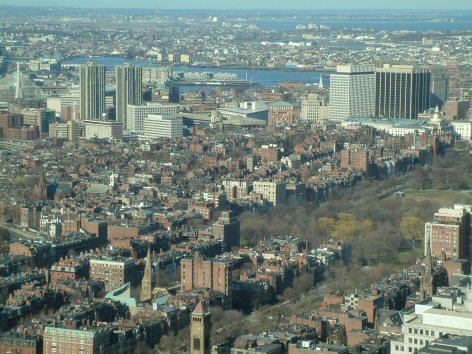 Beacon Hill mit dem State House in der rechten oberen Ecke (goldene Kuppel).